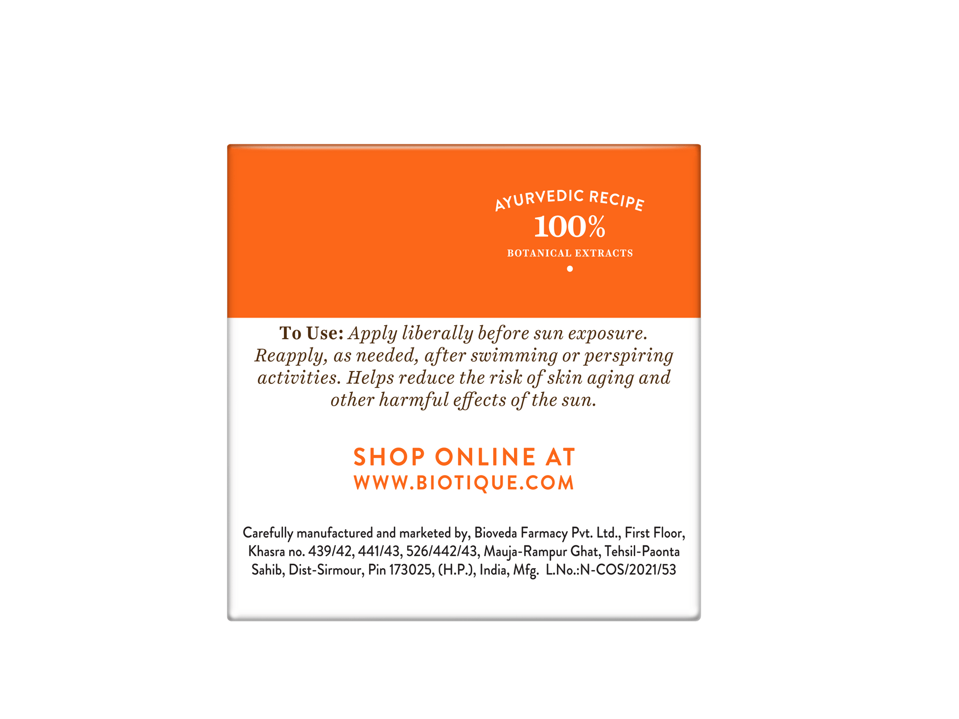 Biotique アーユルヴェーダ サンシールド アロエベラ 30+Spf 日焼け止めクリーム 50g