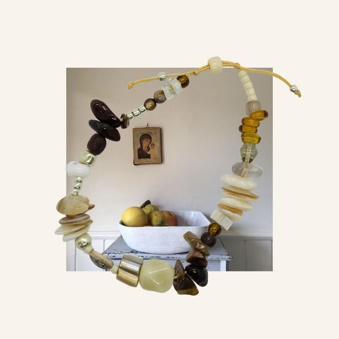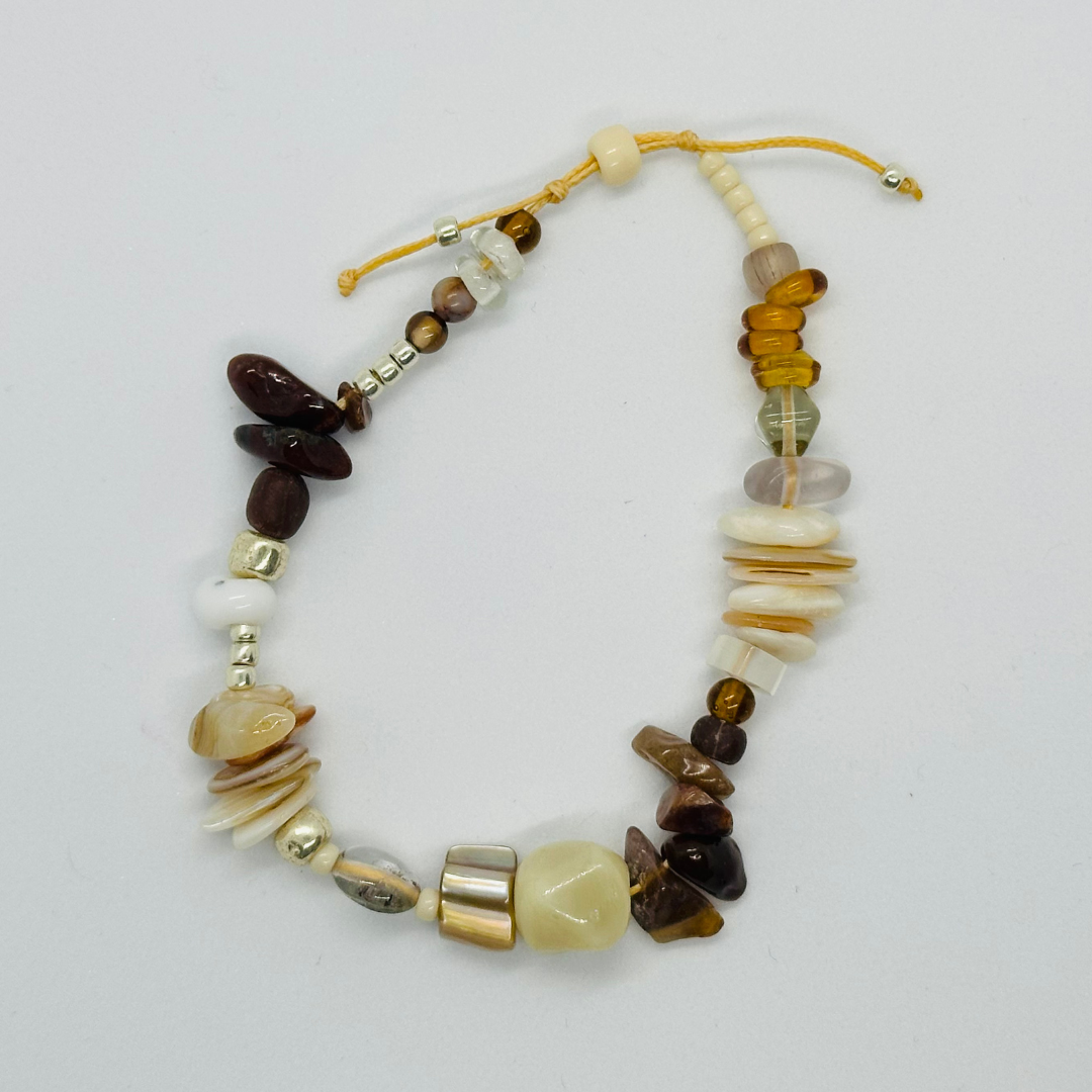 インド、ジャワ、アフリカ、ドイツ、チェコなど様々な国のビーズを使って作られたブレスレットです。