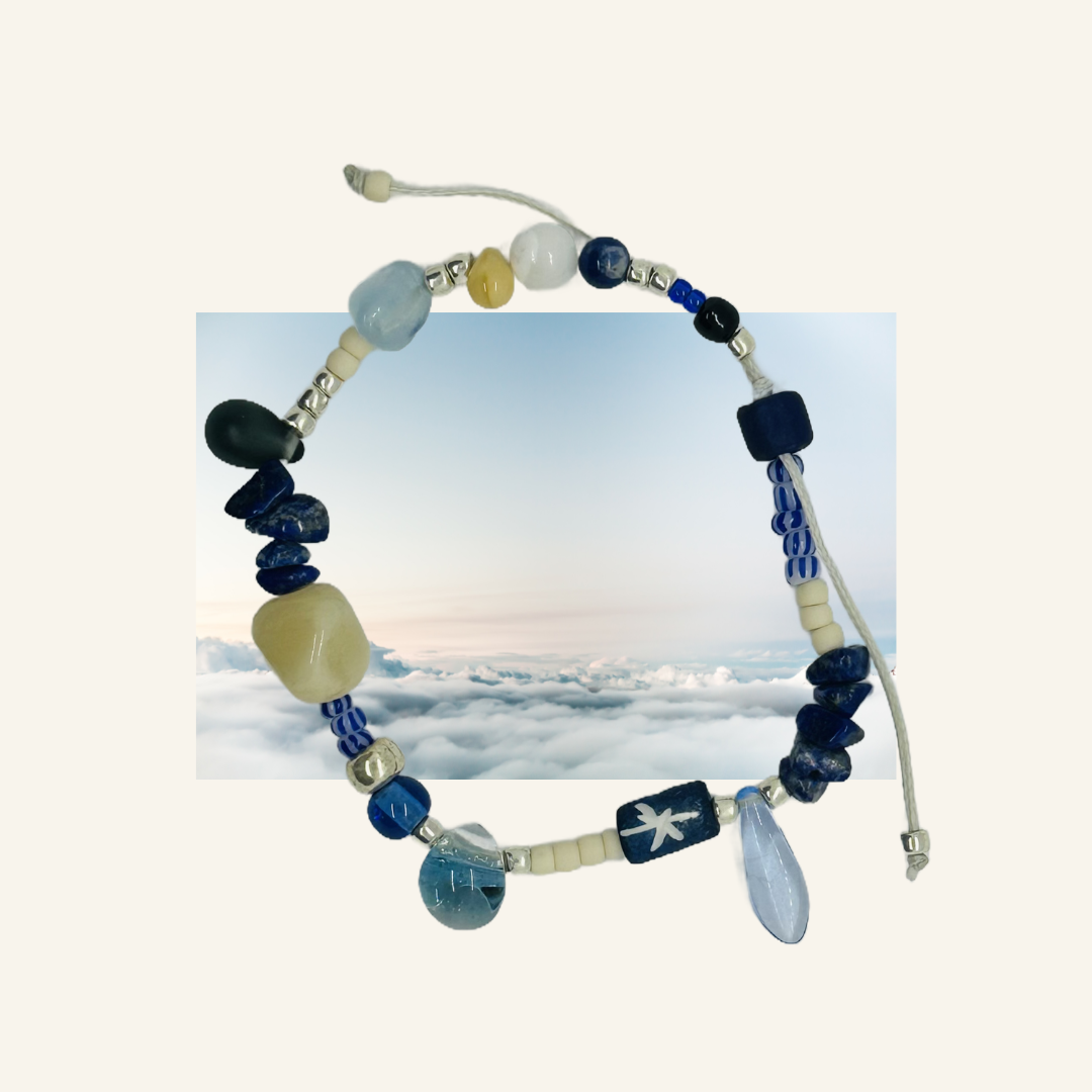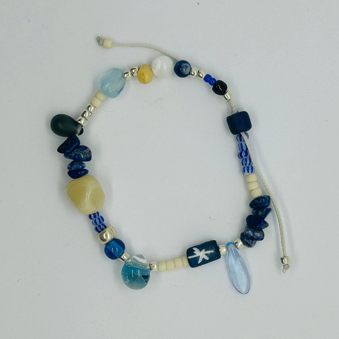 インド、ジャワ、アフリカ、ドイツ、チェコなど様々な国のビーズを使って作られたブレスレットです。