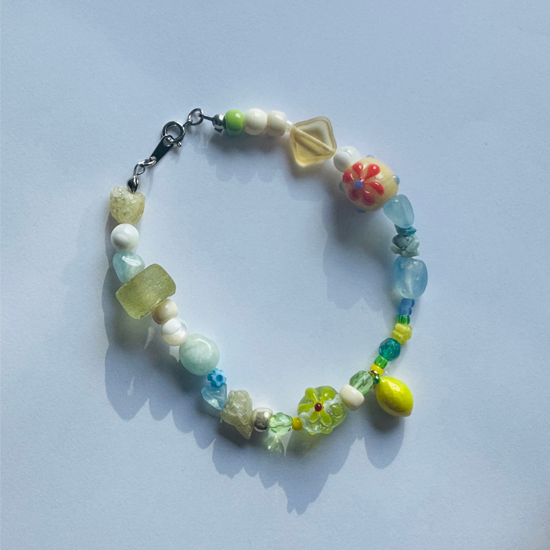 インド、ジャワ、アフリカ、ドイツ、チェコなど様々な国のビーズを使って作られたブレスレットです。