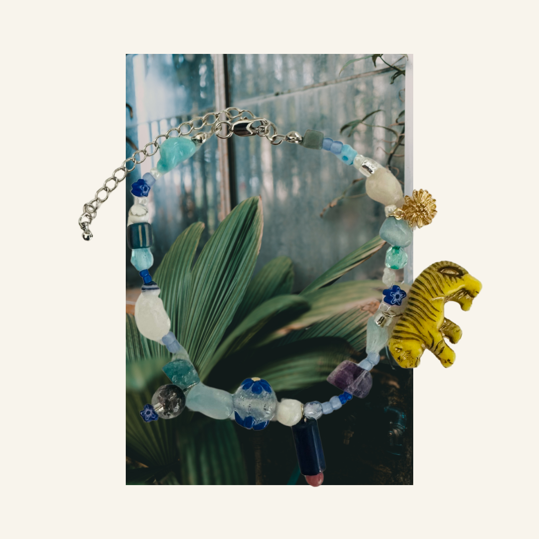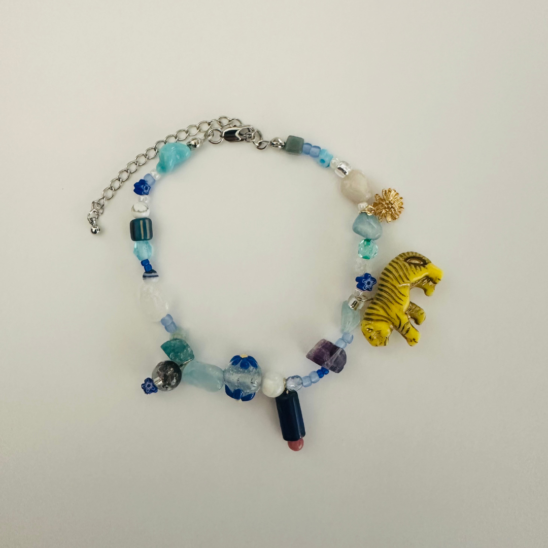 インド、ジャワ、アフリカ、ドイツ、チェコなど様々な国のビーズを使って作られたブレスレットです。