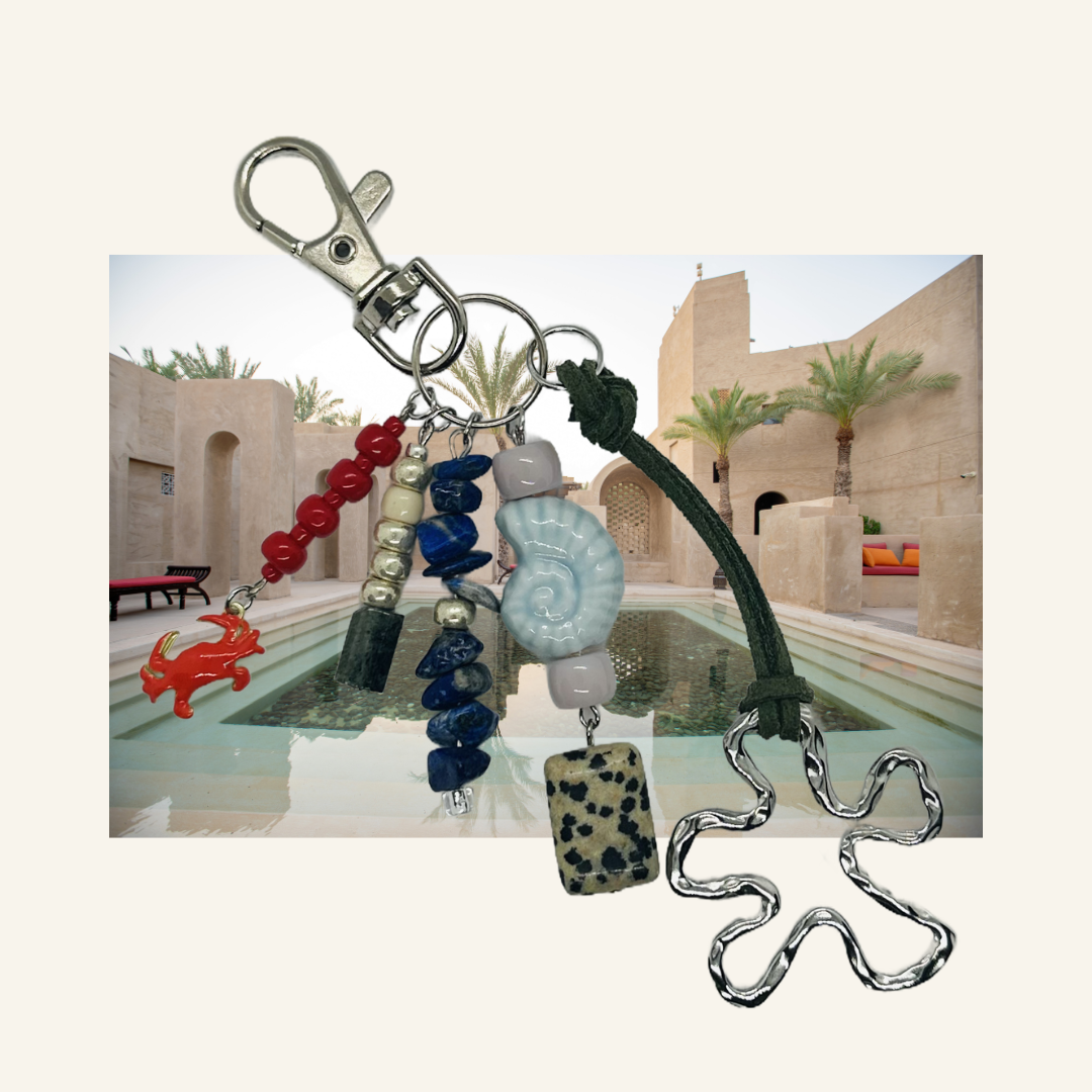 インド、ジャワ、アフリカ、ドイツ、チェコなど様々な国のビーズを使って作られたチャームです。