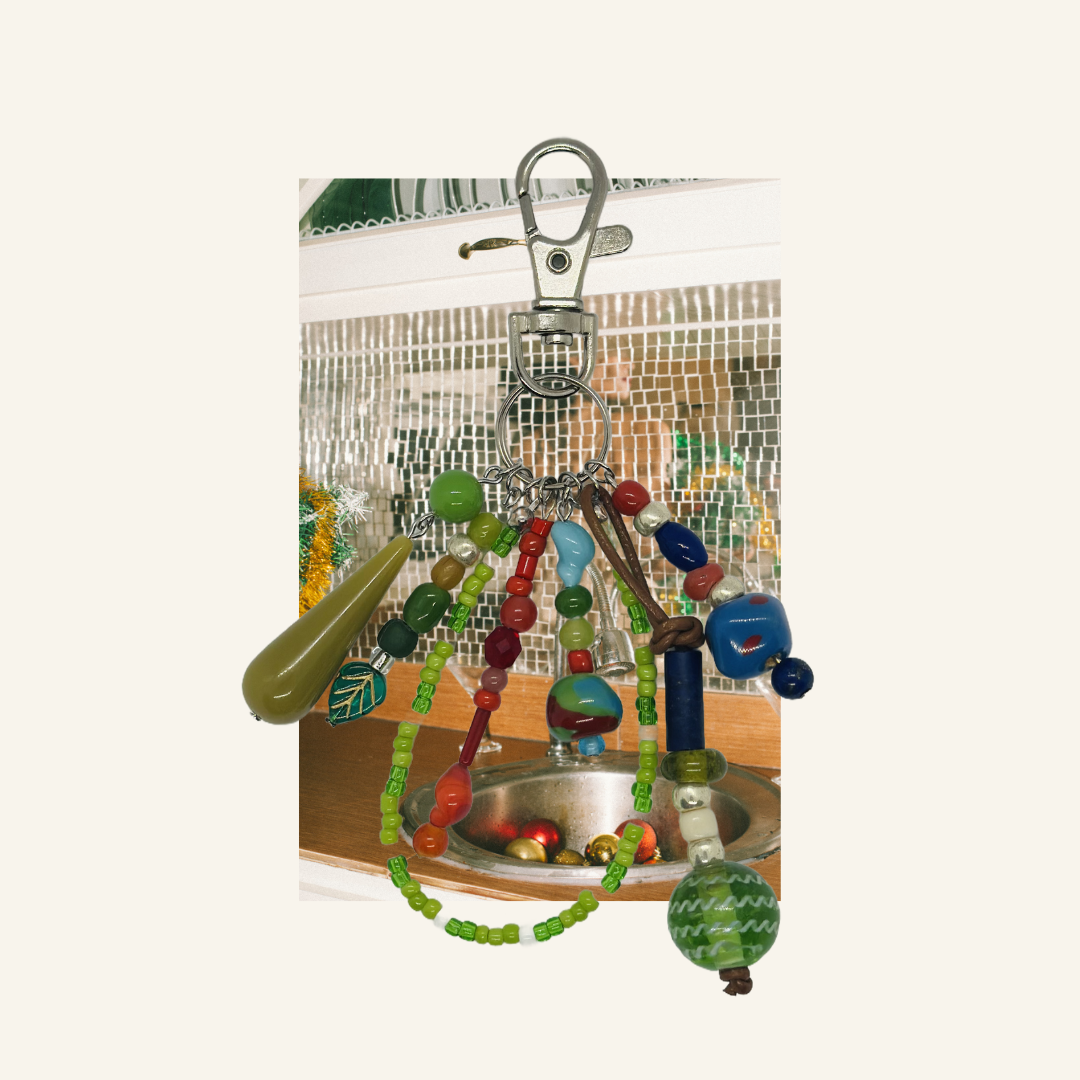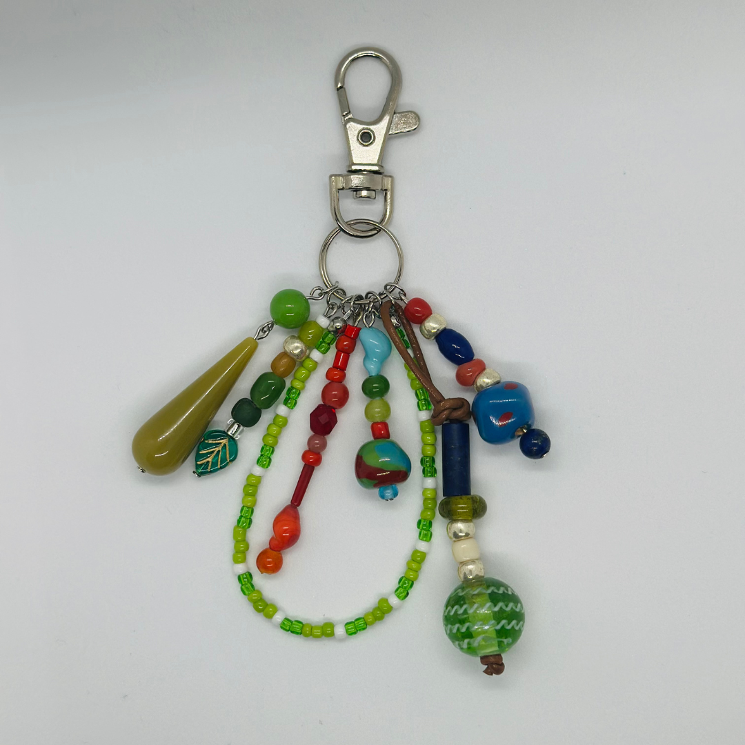 インド、ジャワ、アフリカ、ドイツ、チェコなど様々な国のビーズを使って作られたチャームです。
