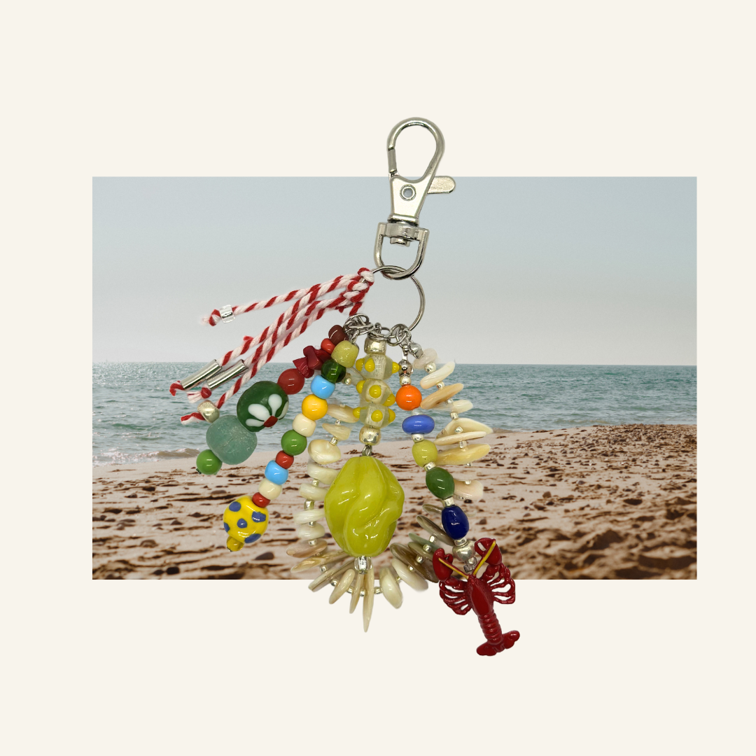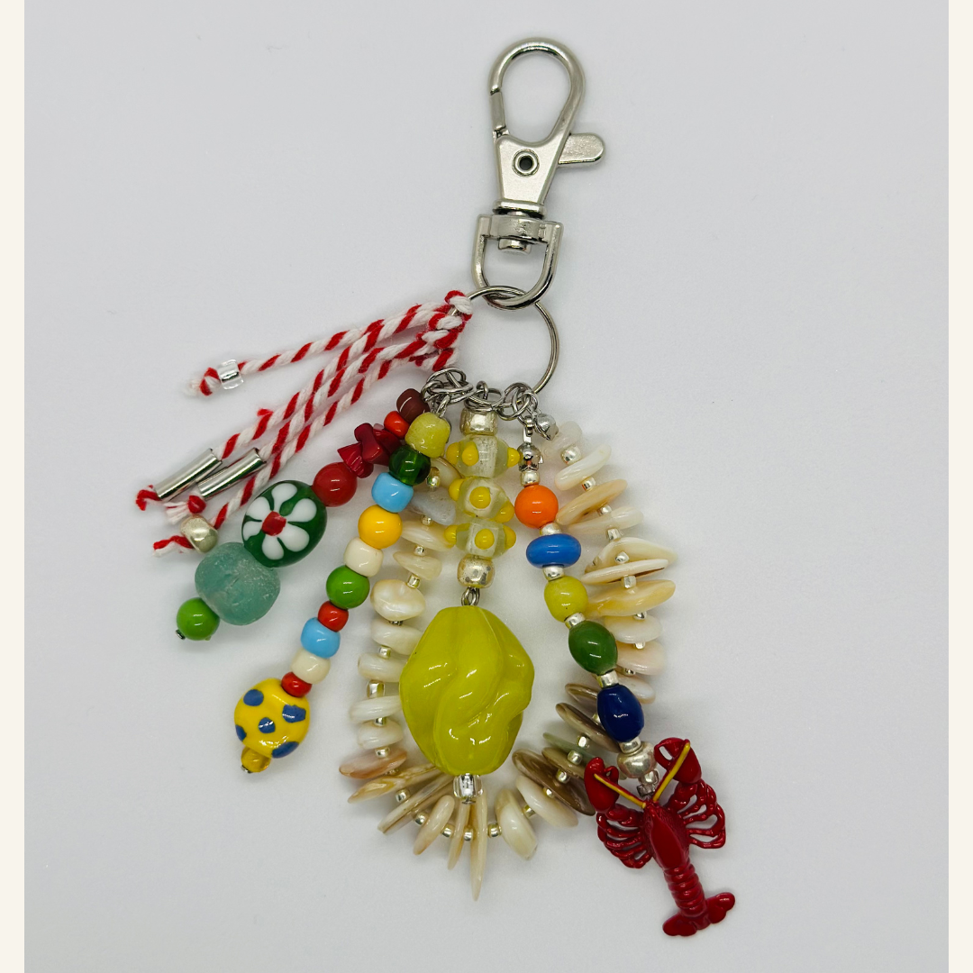 インド、ジャワ、アフリカ、ドイツ、チェコなど様々な国のビーズを使って作られたチャームです。