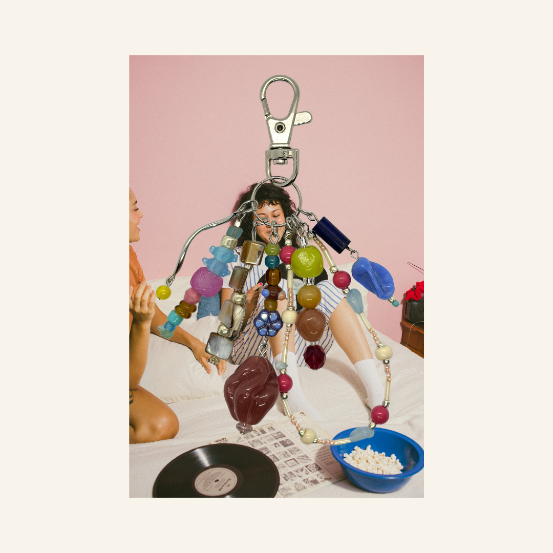 インド、ジャワ、アフリカ、ドイツ、チェコなど様々な国のビーズを使って作られたチャームです。