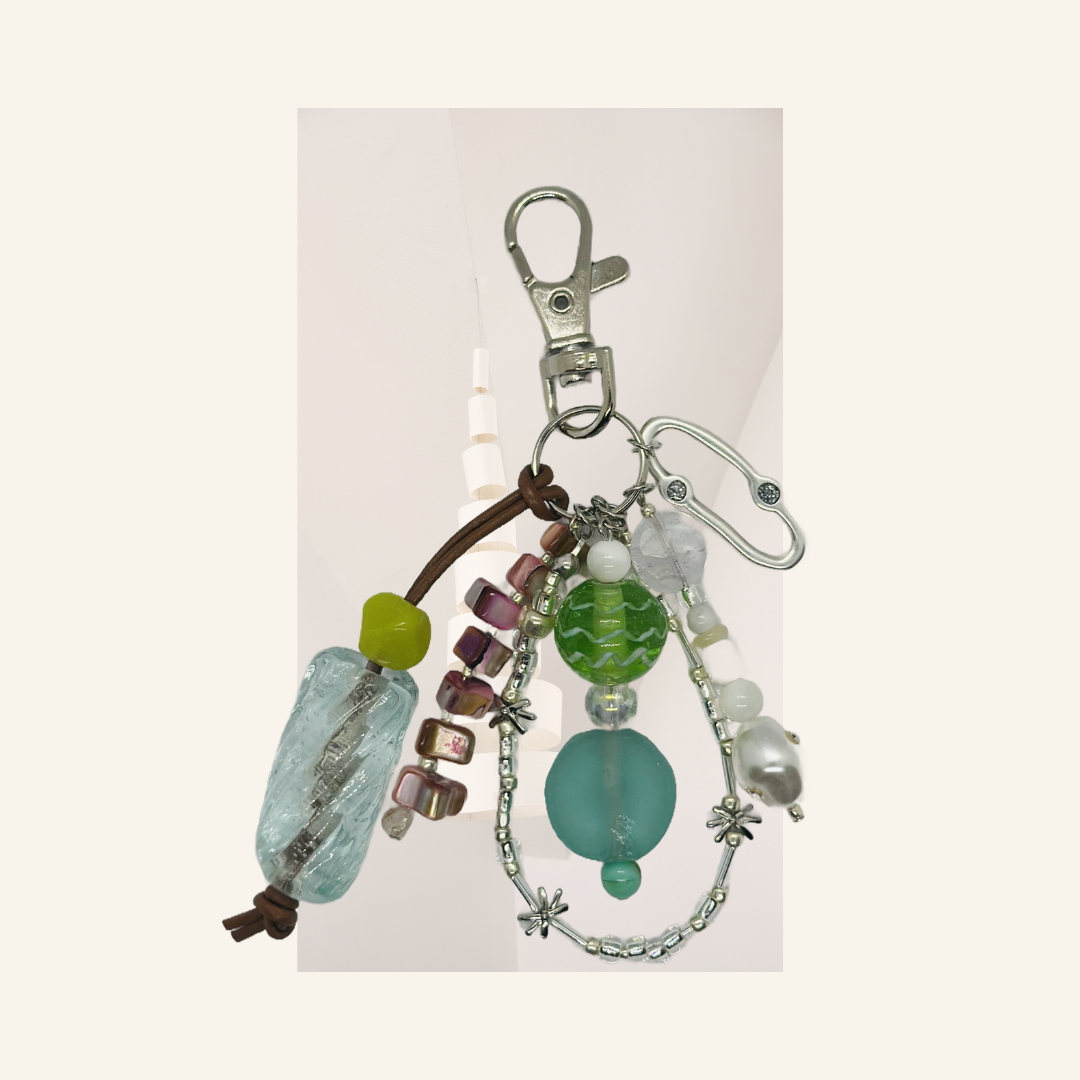 インド、ジャワ、アフリカ、ドイツ、チェコなど様々な国のビーズを使って作られたチャームです。