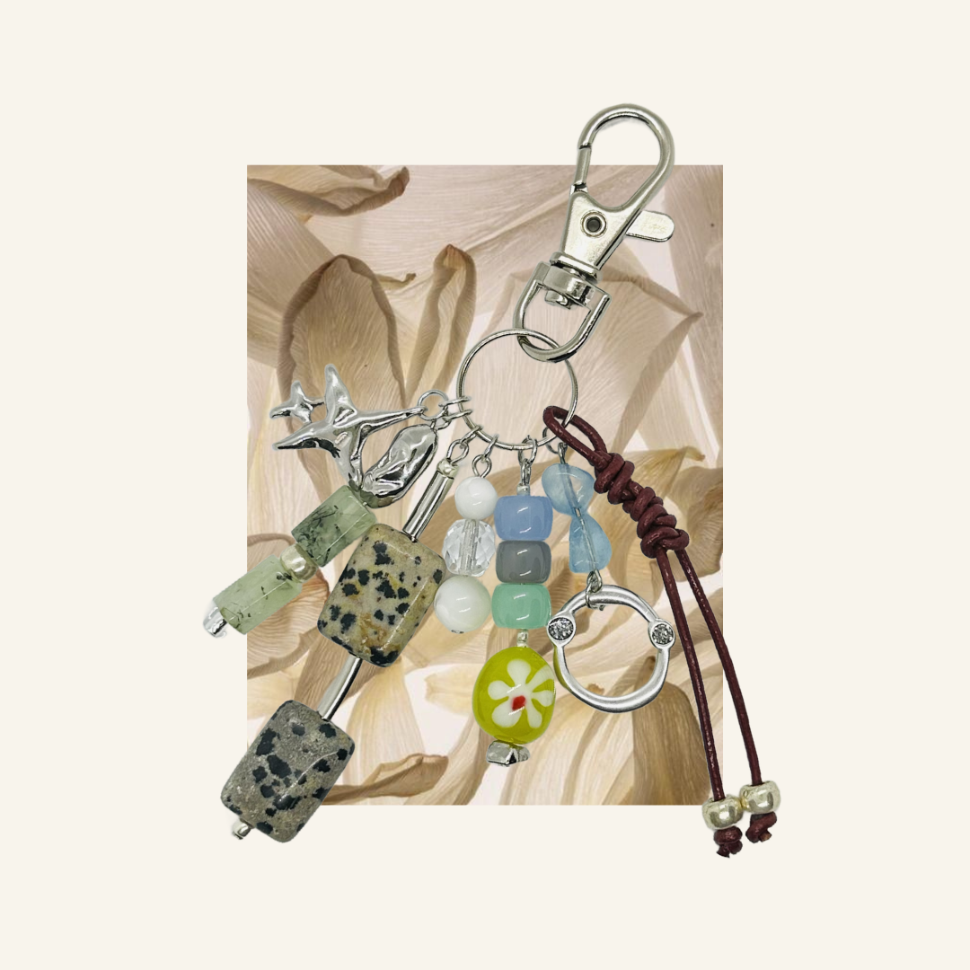 インド、ジャワ、アフリカ、ドイツ、チェコなど様々な国のビーズを使って作られたチャームです。