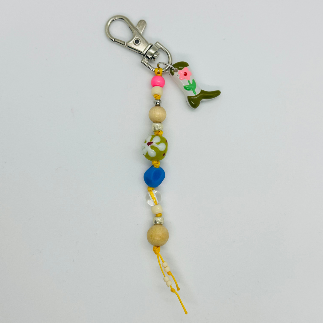 インド、ジャワ、アフリカ、ドイツ、チェコなど様々な国のビーズを使って作られたチャームです。