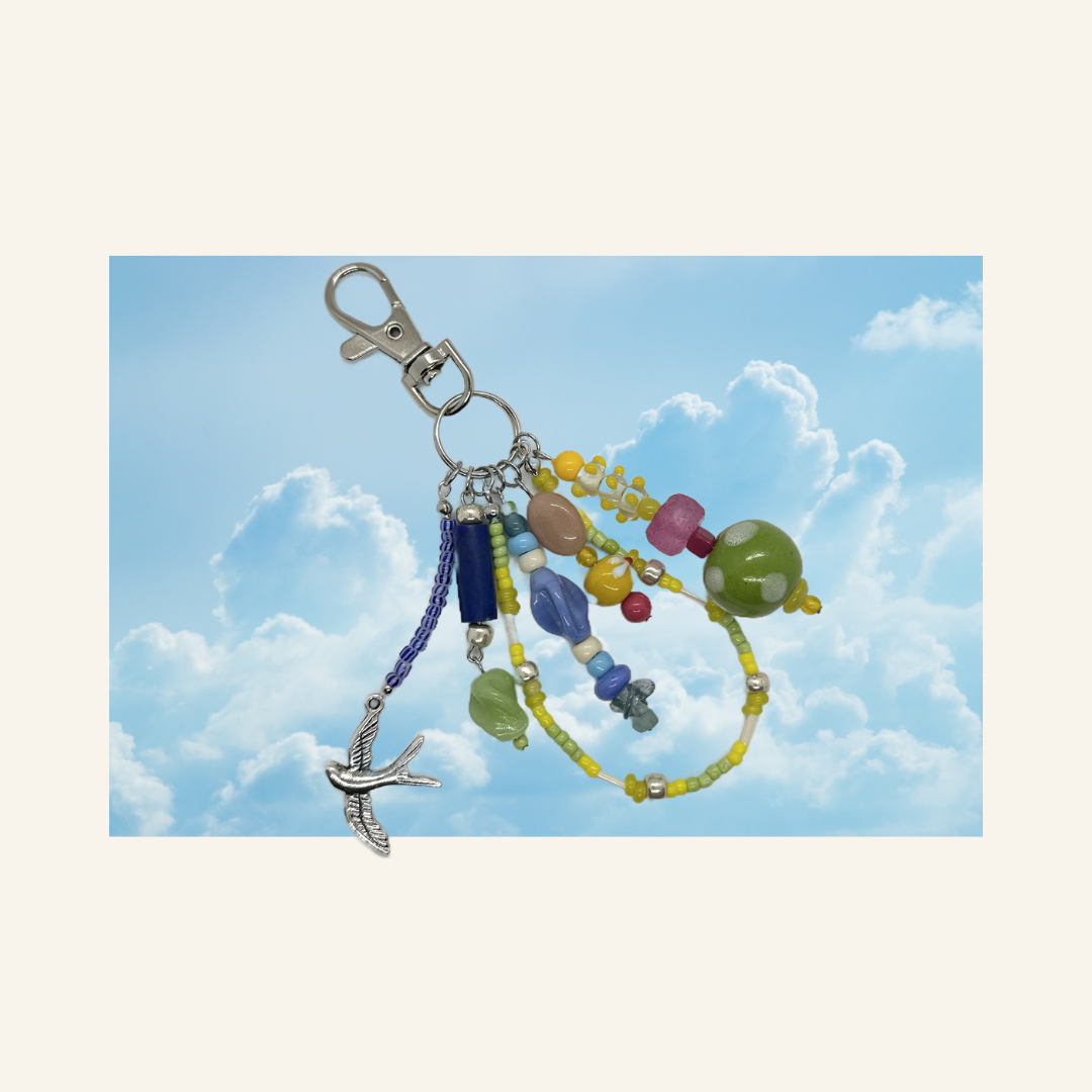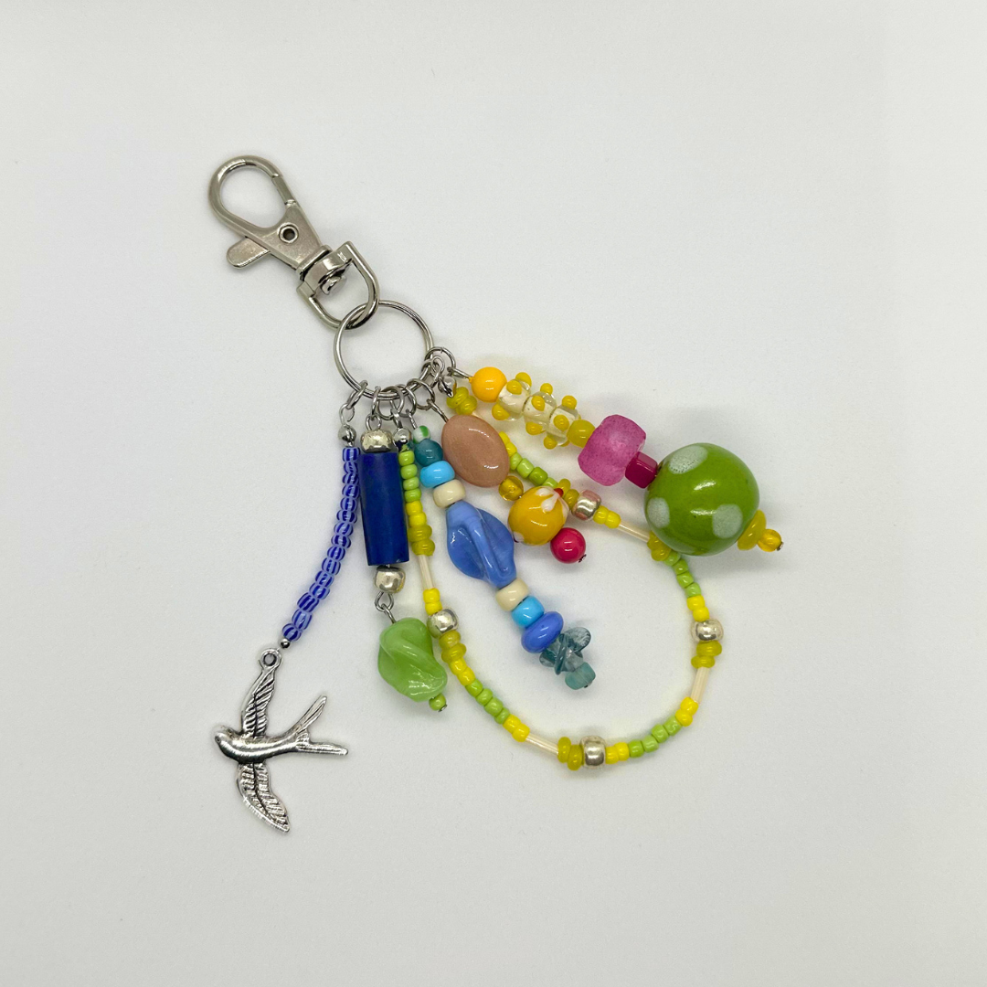 インド、ジャワ、アフリカ、ドイツ、チェコなど様々な国のビーズを使って作られたチャームです。