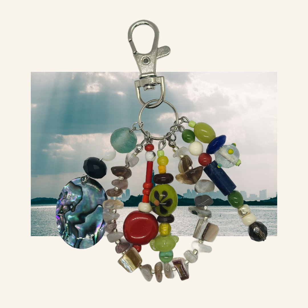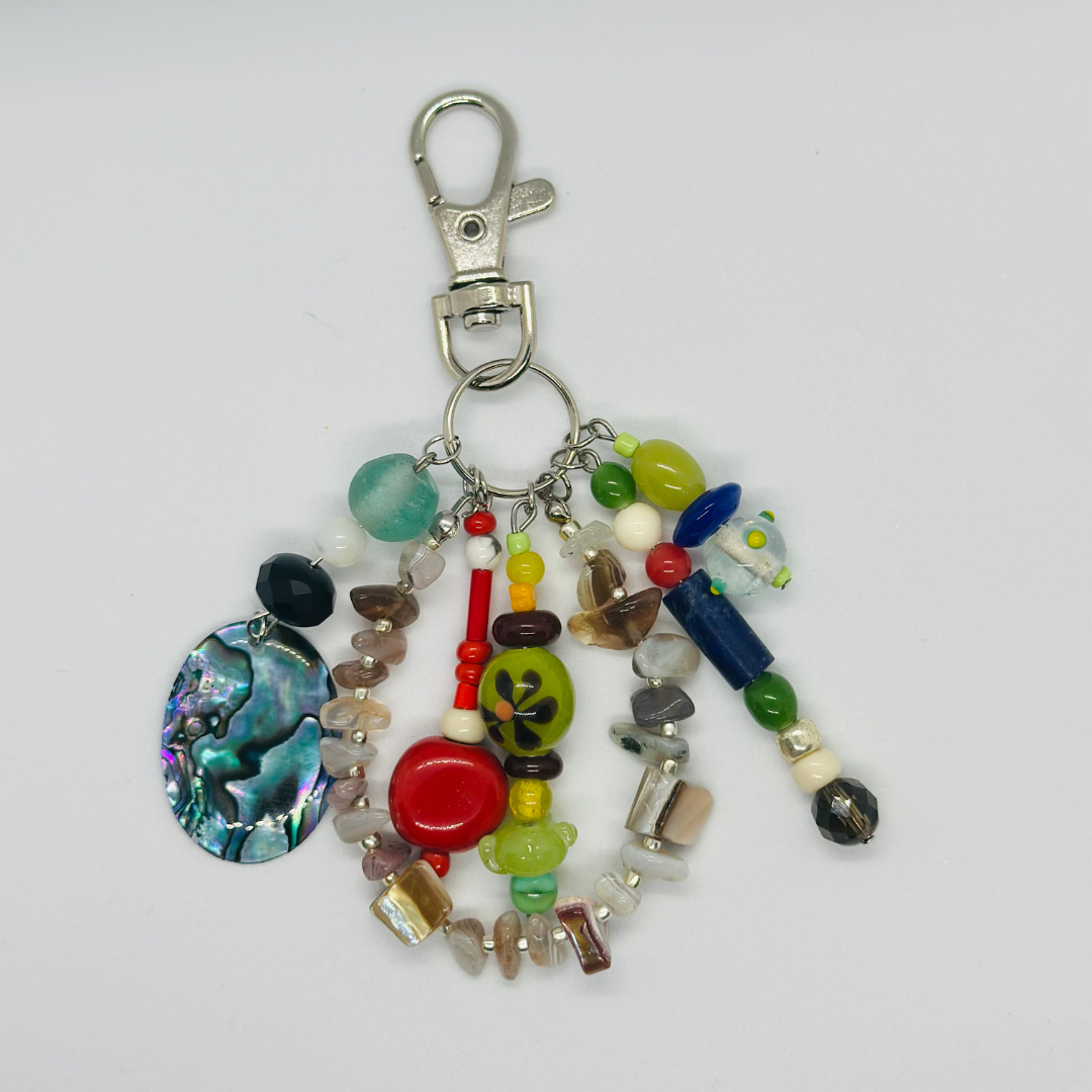 インド、ジャワ、アフリカ、ドイツ、チェコなど様々な国のビーズを使って作られたチャームです。