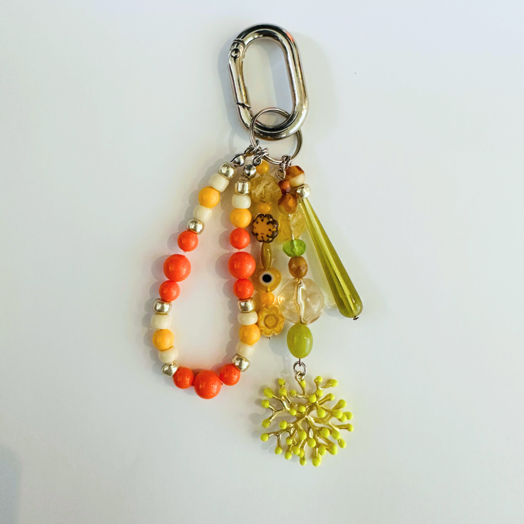 インド、アフリカ、ドイツ、チェコなど様々な国のビーズを使って作られたチャームです。