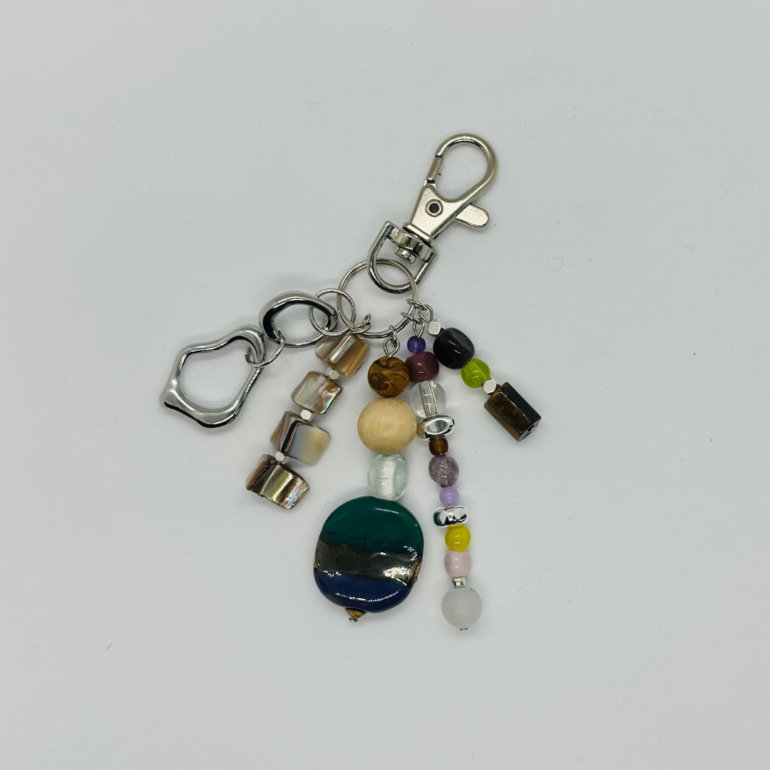 インド、ジャワ、アフリカ、ドイツ、チェコなど様々な国のビーズを使って作られたチャームです。