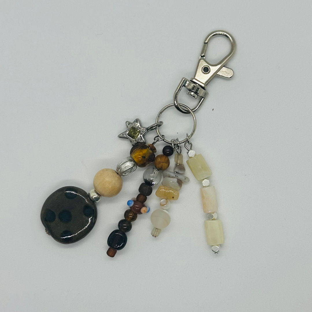 インド、ジャワ、アフリカ、ドイツ、チェコなど様々な国のビーズを使って作られたチャームです。