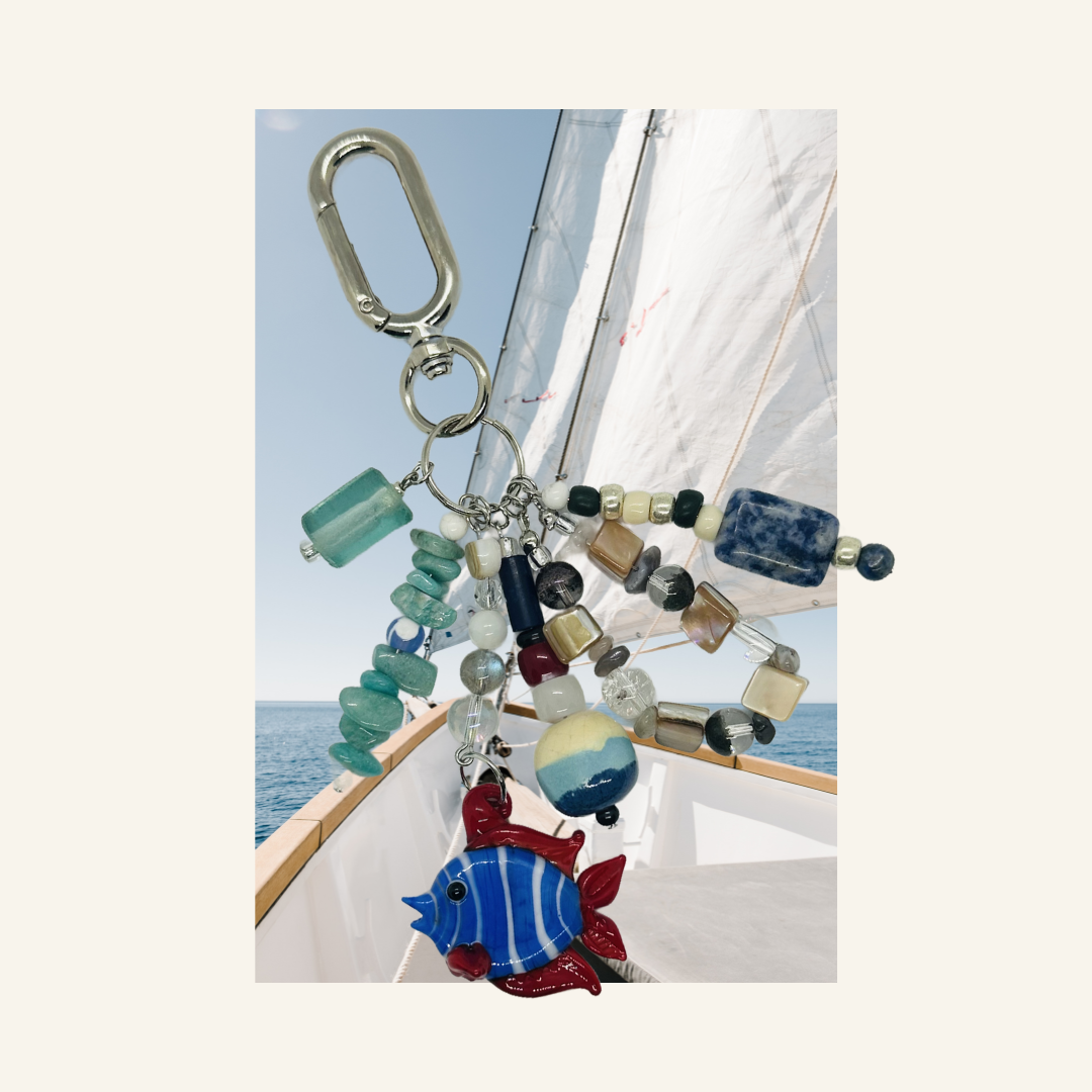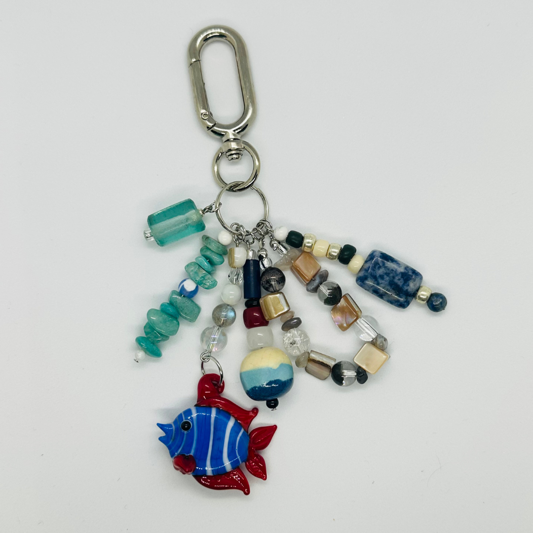 インド、ジャワ、アフリカ、ドイツ、チェコなど様々な国のビーズを使って作られたチャームです。