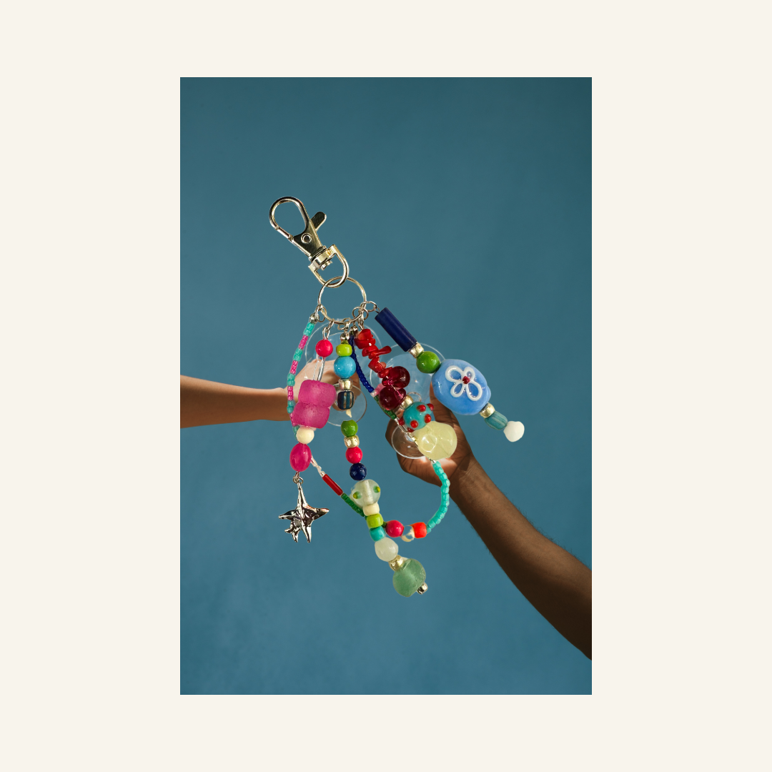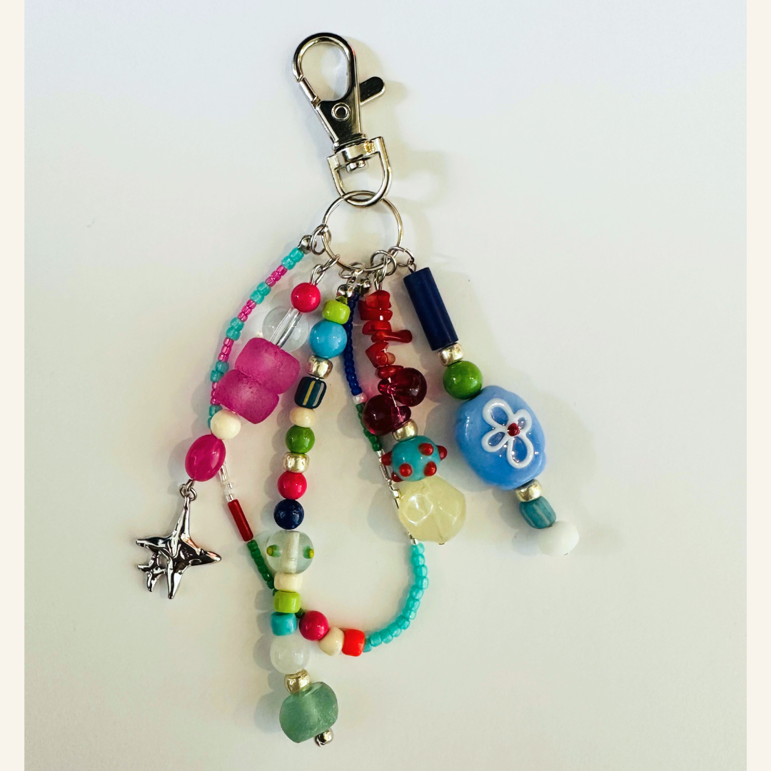 インド、アフリカ、ドイツ、チェコなど様々な国のビーズを使って作られたチャームです。