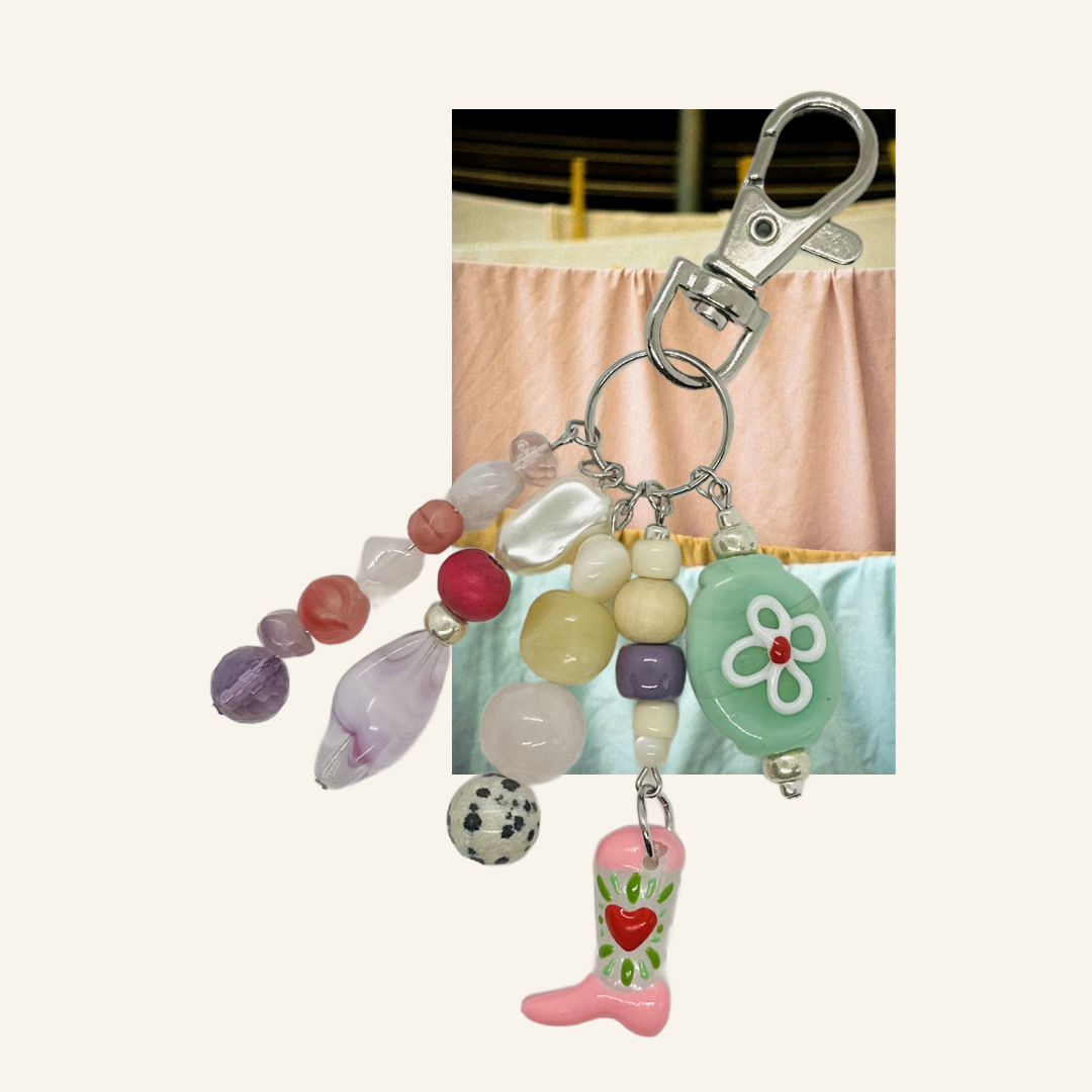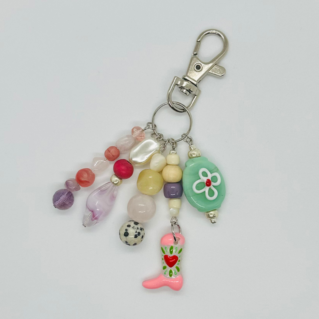 インド、ジャワ、アフリカ、ドイツ、チェコなど様々な国のビーズを使って作られたチャームです。
