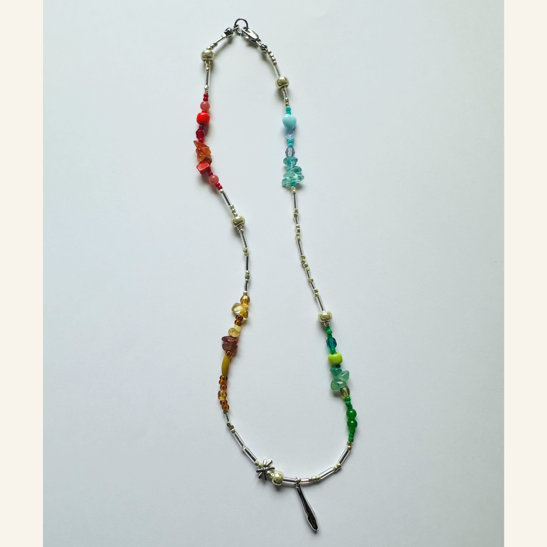 インド、アフリカ、ドイツ、チェコなど様々な国のビーズを使って作られたネックレスです。