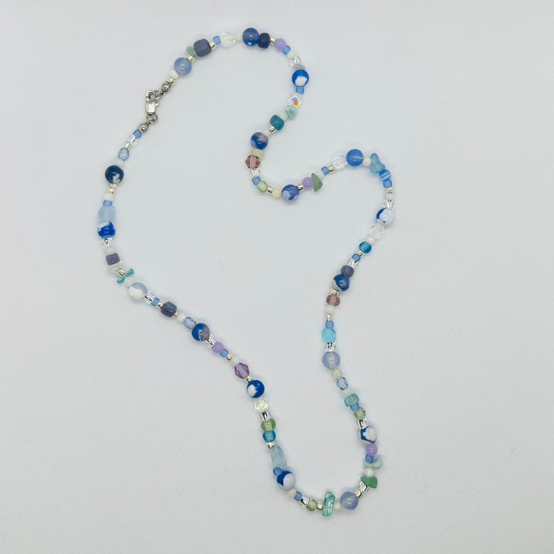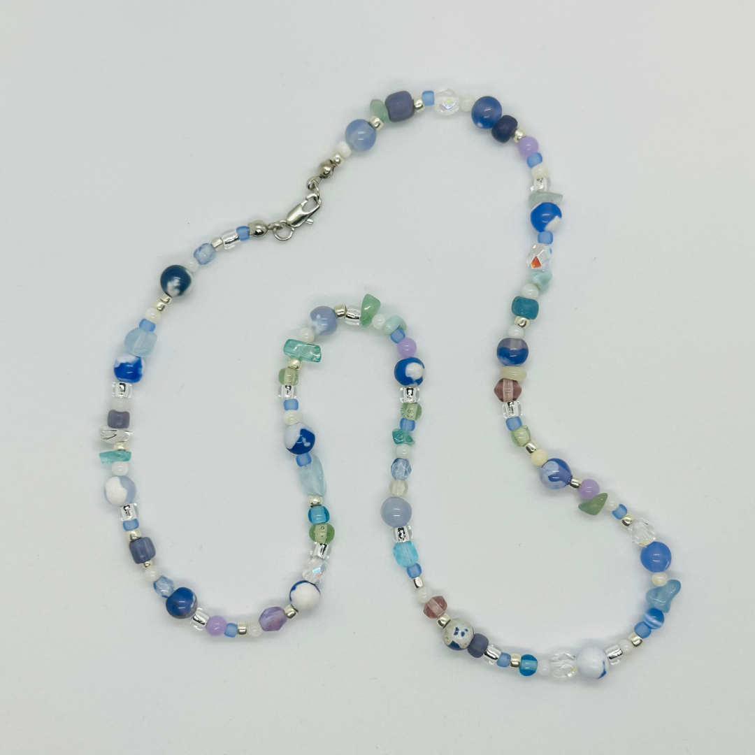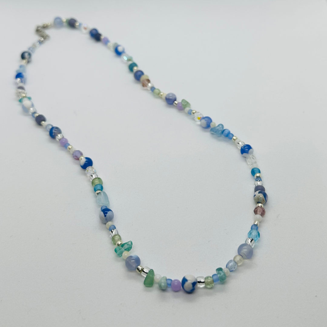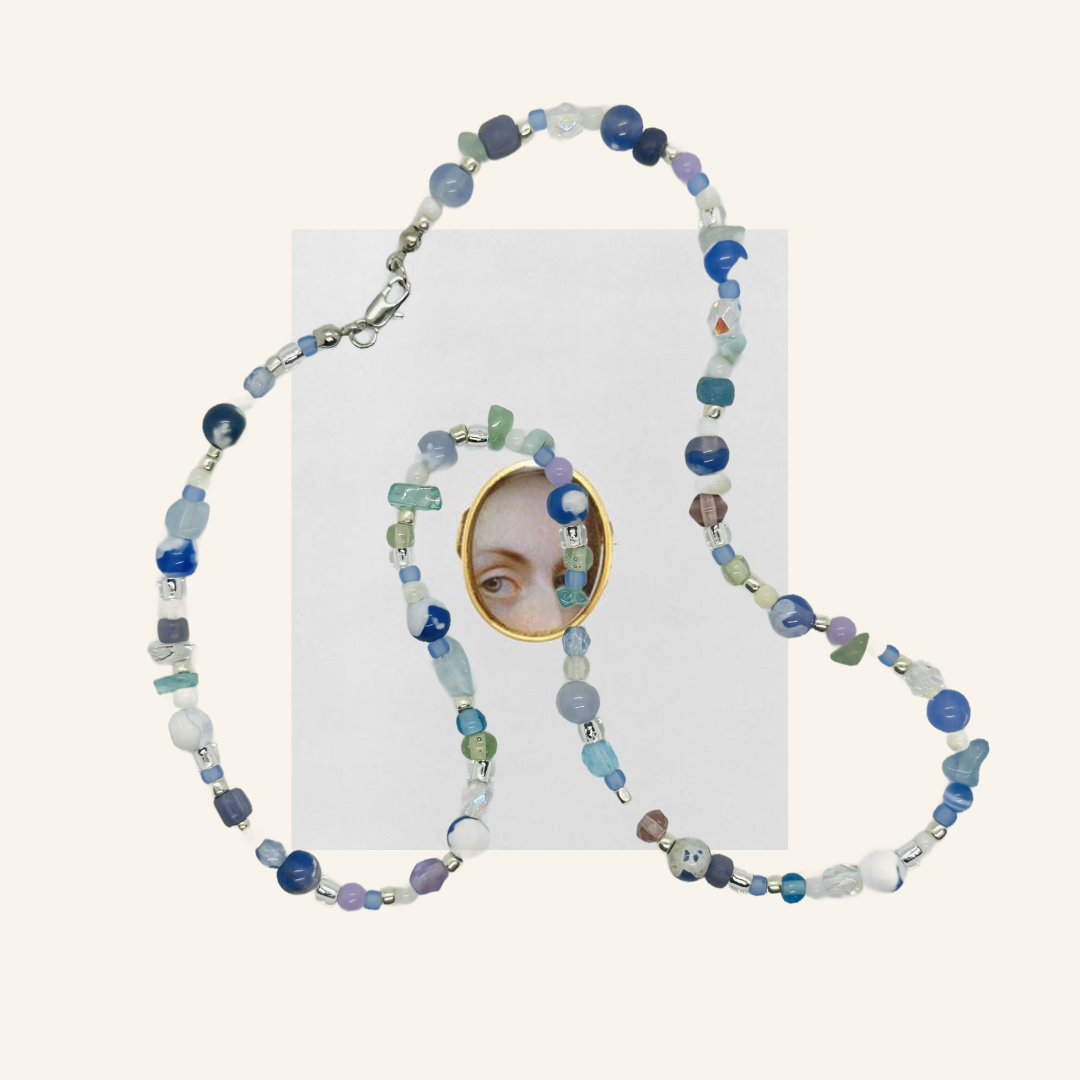 インド、ジャワ、アフリカ、ドイツ、チェコなど様々な国のビーズを使って作られたネックレスです。