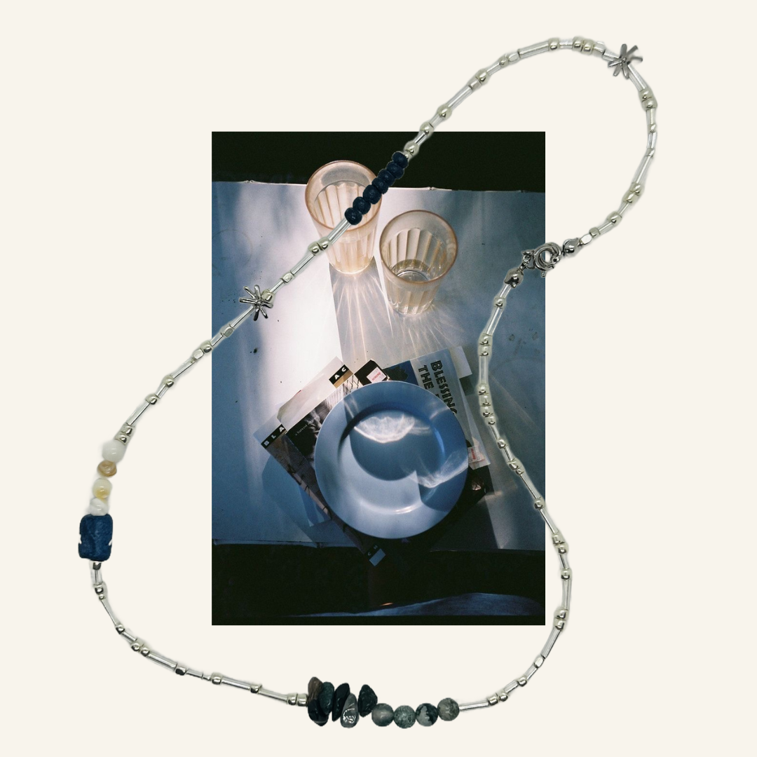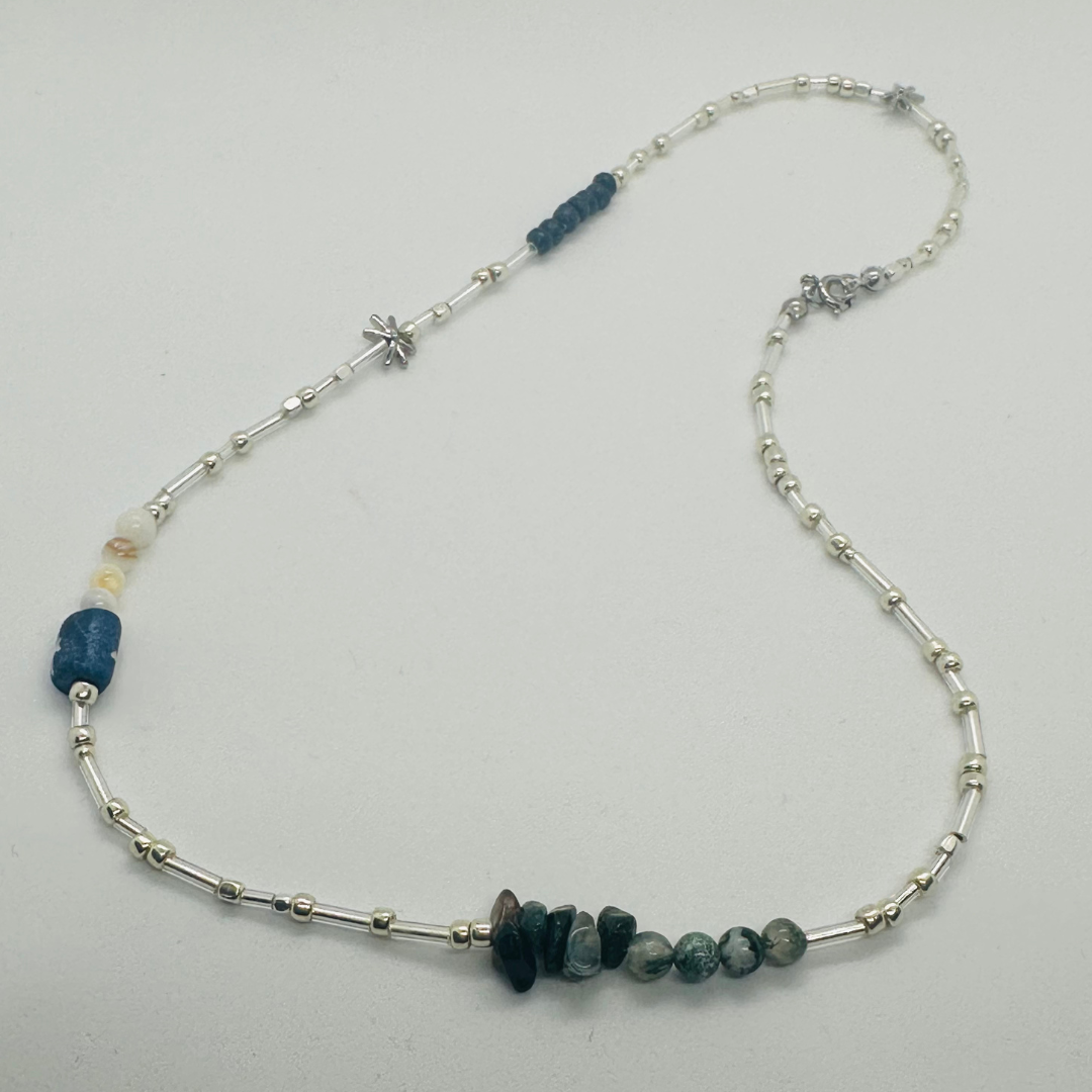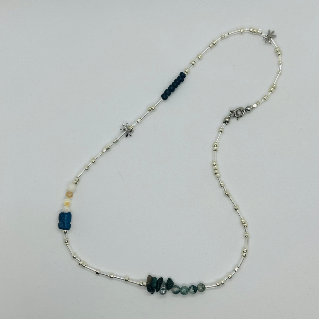 インド、ジャワ、アフリカ、ドイツ、チェコなど様々な国のビーズを使って作られたネックレスです。