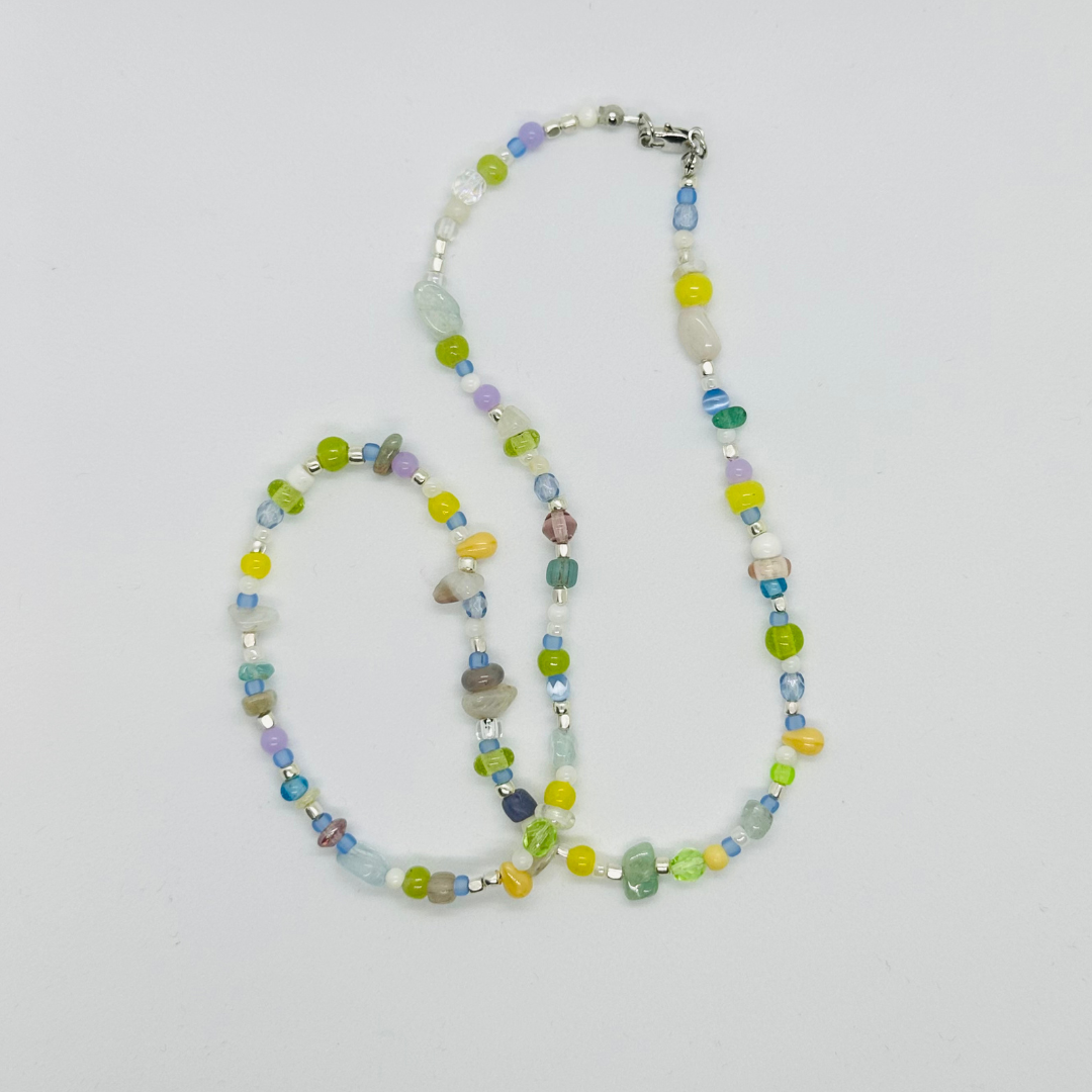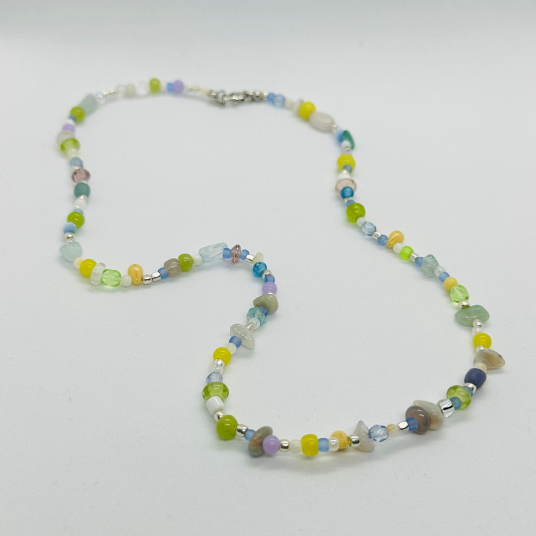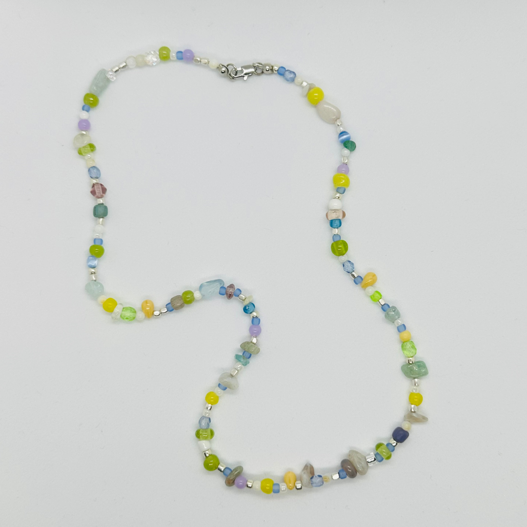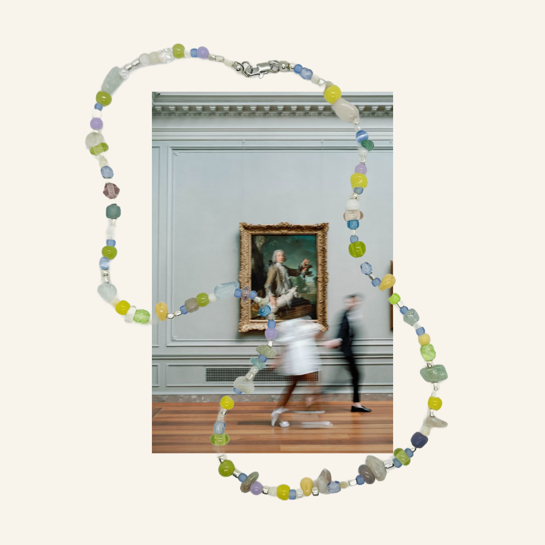インド、ジャワ、アフリカ、ドイツ、チェコなど様々な国のビーズを使って作られたネックレスです。