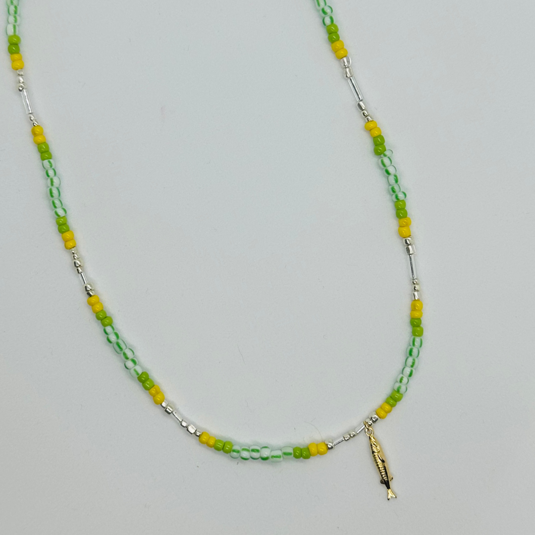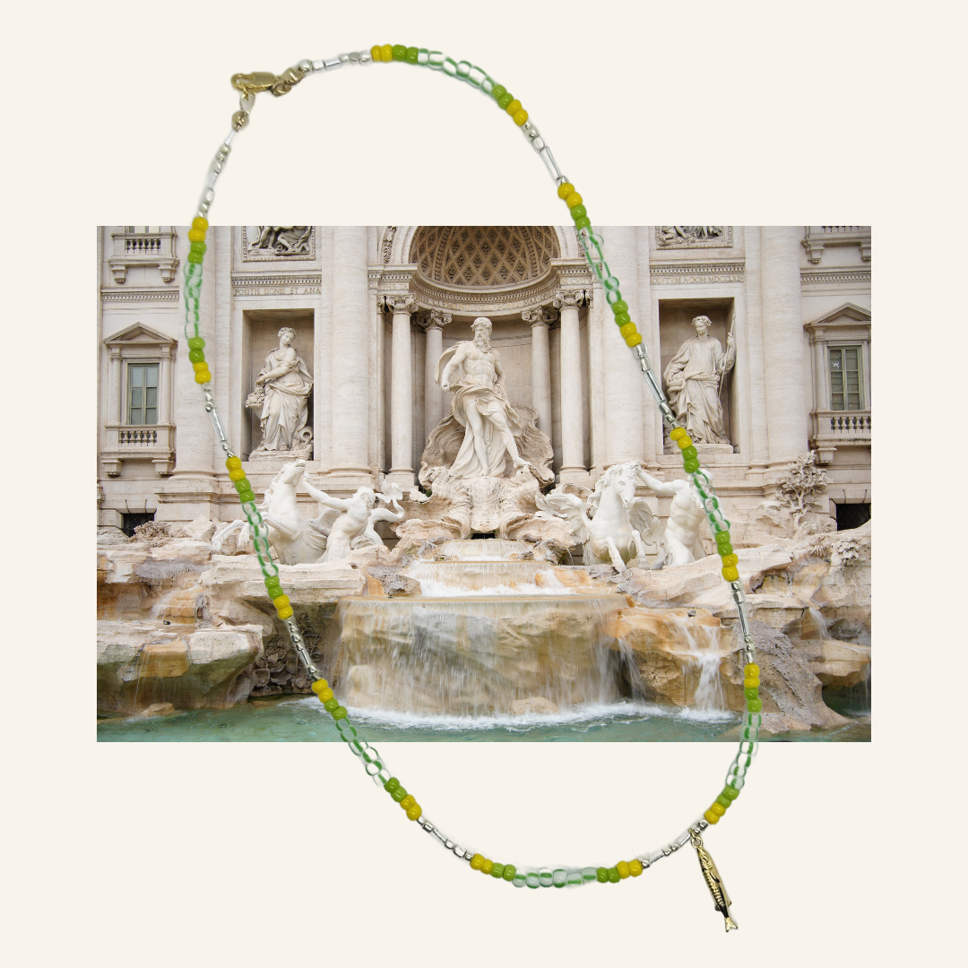 インド、ジャワ、アフリカ、ドイツ、チェコなど様々な国のビーズを使って作られたネックレスです。