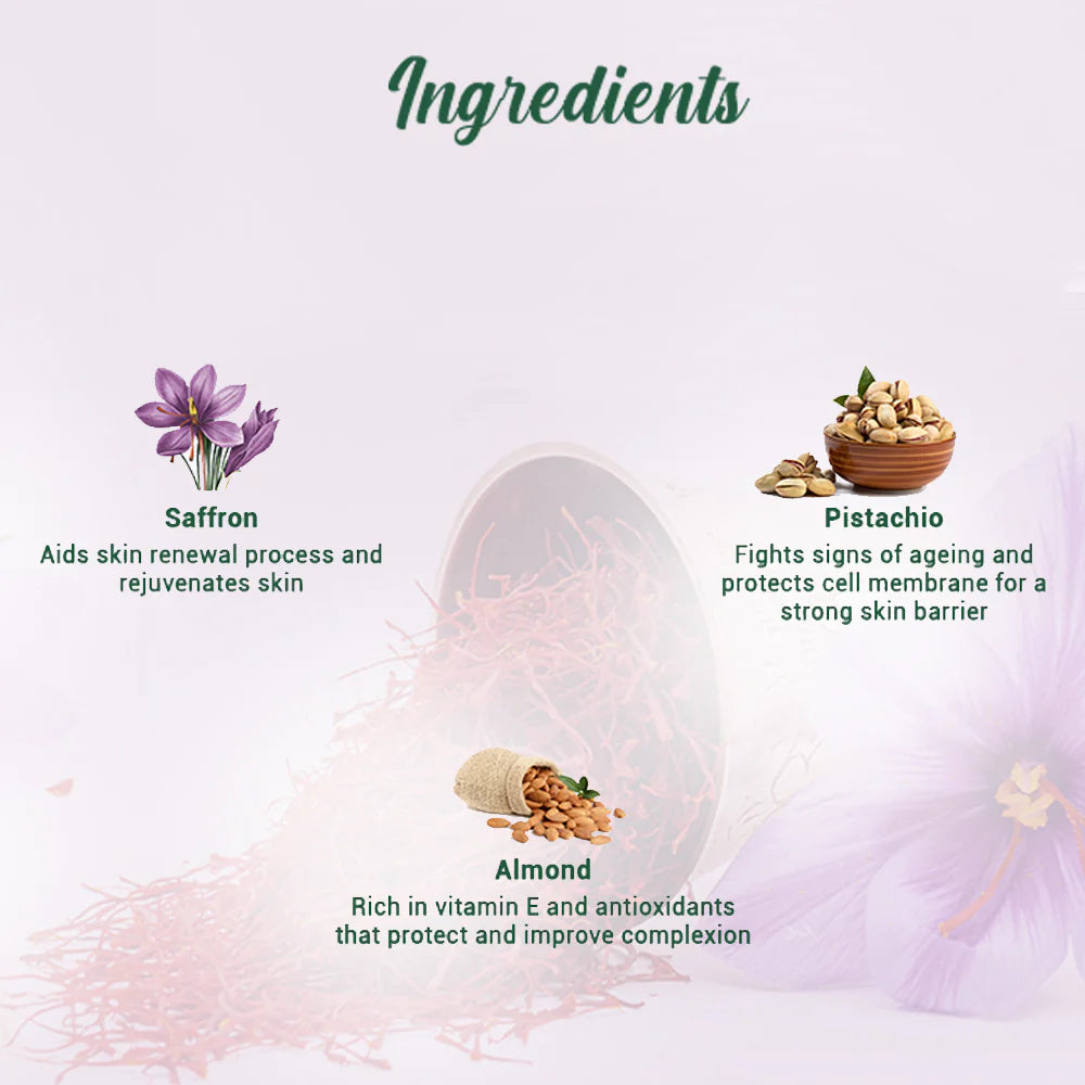 サフランユース アンチエイジングクリームは、乾燥や加齢による肌の衰えを補い、ハリを与え、弾力のある肌にします。輝きを取り戻します。シミ、シワ、たるみ、その他の早期老化の兆候に対処することが証明されています。サフラン、ワイルドターメリック、ターメリック、ピスタチオ&アーモンドを配合。